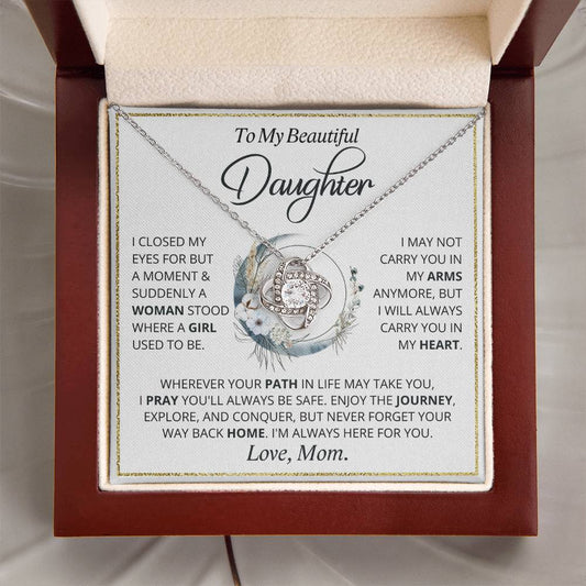 To My Daughter, I'm Always Here For You, Love Knot Necklace with LED Light Gift Box