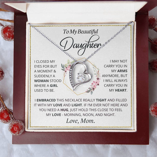 To My Daughter, I Will Always Carry You In My Heart, Forever Love Necklace with LED Light Gift Box