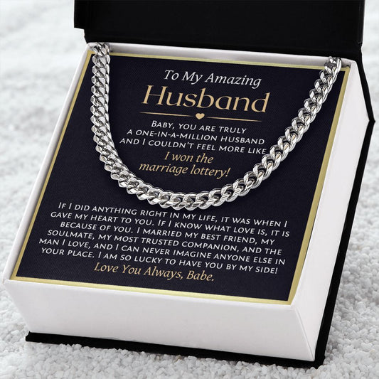 To My Husband Cuban Chain Necklace, Romantic Gift for Husband with Love Message