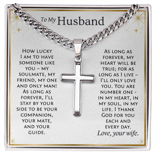 To My Husband, Personalized Cross with Cuban Chain, Anniversary, Birthday, Valentine's Day Gift for Husband