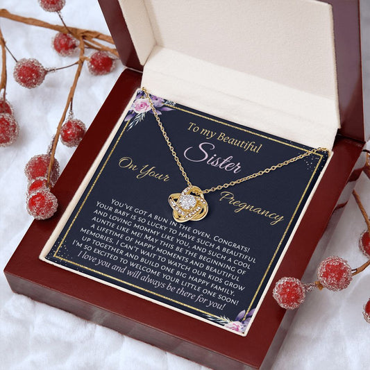 To My Beautiful Sister On Your Pregnancy - Love Knot Necklace