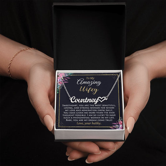 To My Amazing Wifey, Personalized Name with Heart Necklace, Wife Gift from Husband